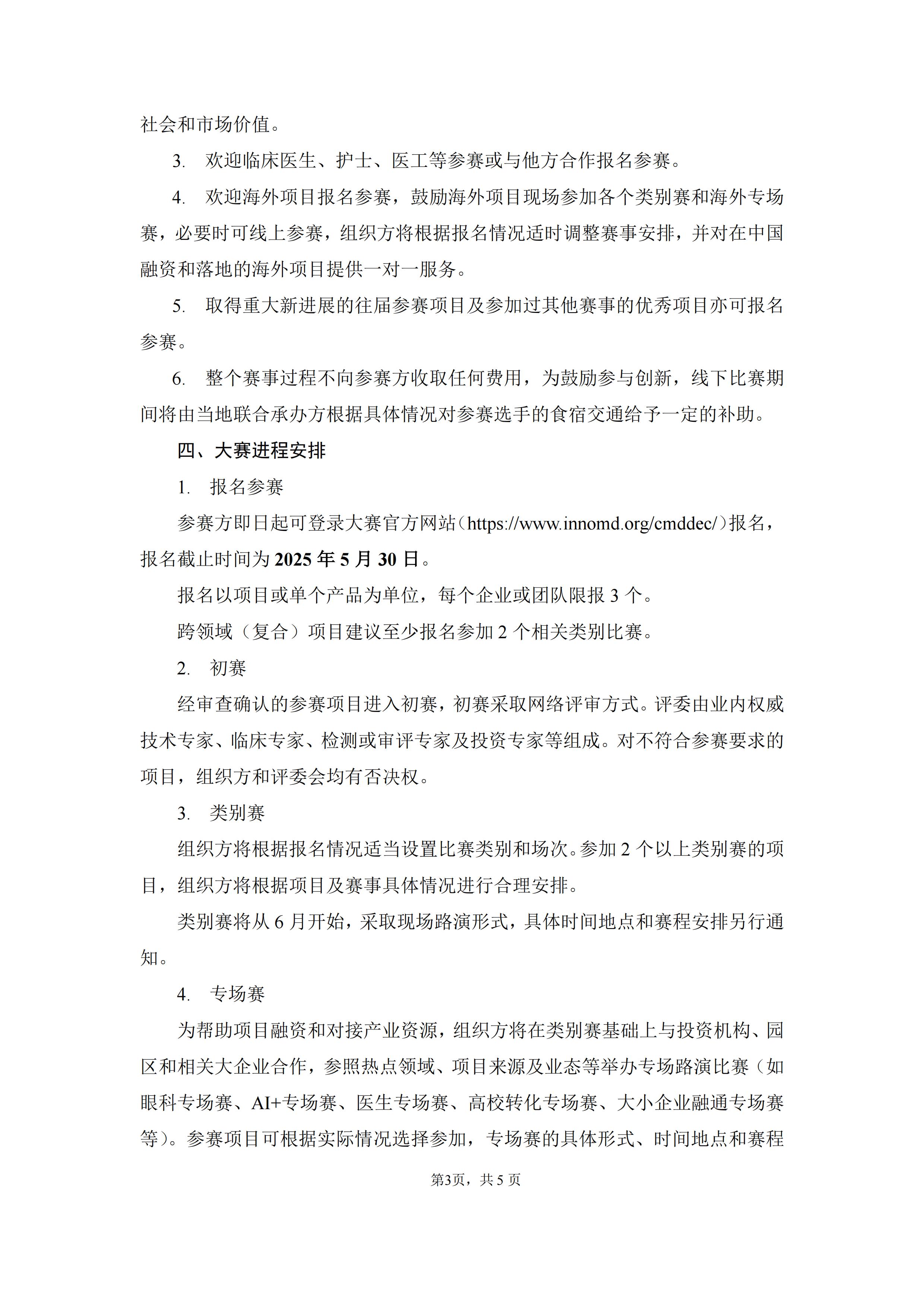 参赛方即日起可登录大赛官方网站(医疗器械创新网网://dingheny.com/cmddec/)报名,报名截止时间为2025年5月30日。